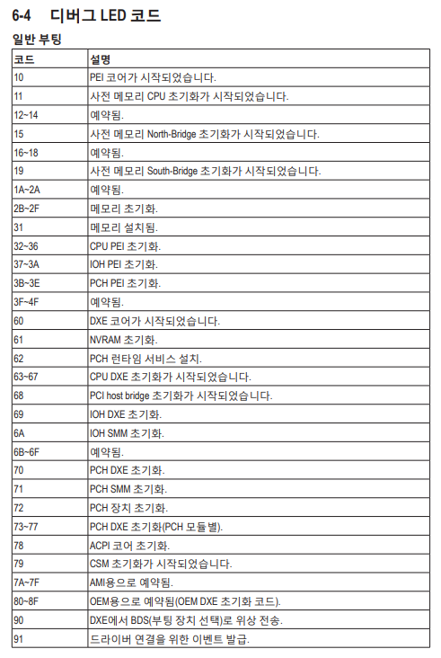 Debug LED 는 07 표시를 하고, 더 이상 진행이 되지 않는다.