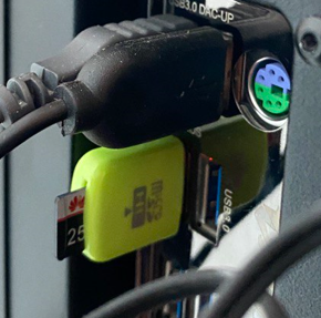 디버그 LED 숫자가 00 으로 바뀌고, 아래와 같이 후면 패널의 하얀 USB 포트에 끼워둔 메모리 스틱에 노란 불이 켜지면서, 읽기 시작한다.